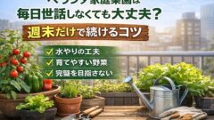 「家庭菜園=毎日水やり・毎日観察」そう思っている人ほど、始める前からハードルを感じがちです。結論から言います。ベランダ家庭菜園は、毎日世話をしなくても続けられます。実際、私は平日は仕事中心、週末だけ世話をする“週末菜園”スタイルで家庭菜園を...